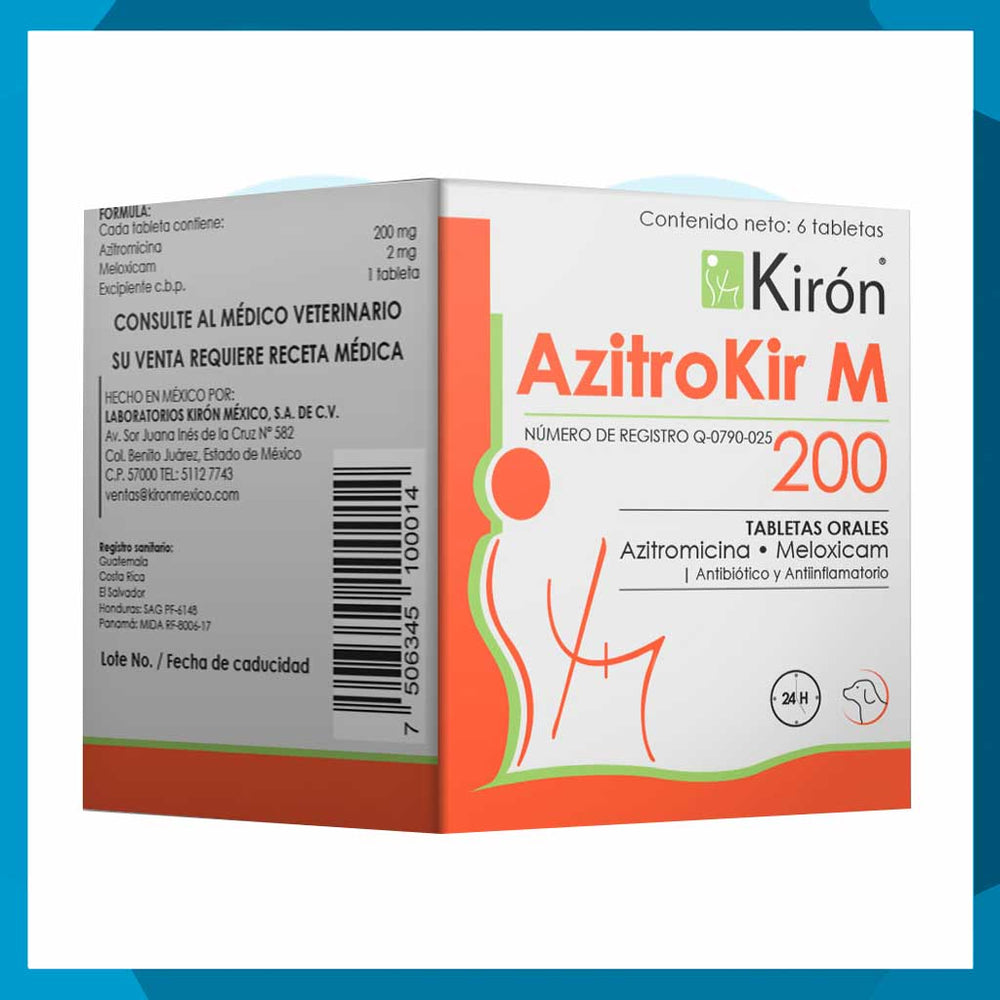 AzitroKir M 200mg en caja de 6 tabletas es un antibiótico veterinario de amplio espectro diseñado para el tratamiento de infecciones en perros y gatos. Su fórmula de liberación prolongada garantiza una sola dosis diaria, facilitando el cumplimiento del tratamiento. Requiere receta médica veterinaria vigente. Contiene azitromicina, un macrólido de alta eficacia y buena tolerancia en mascotas.
