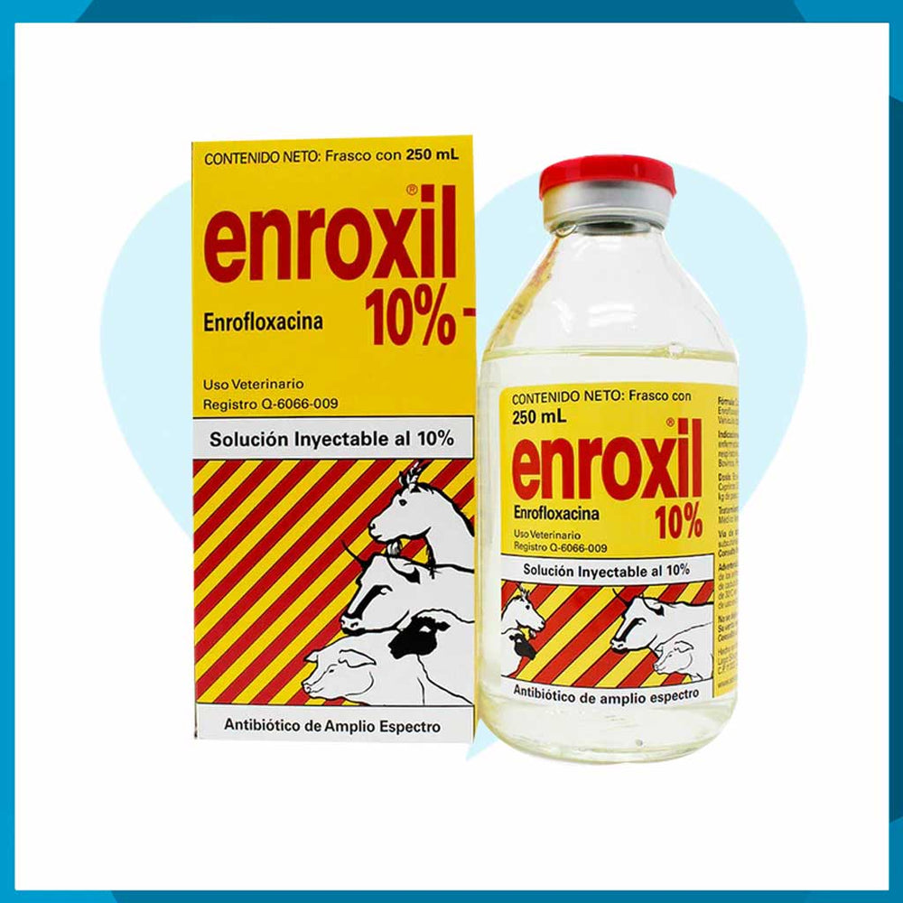 Enroxil es una solución inyectable de enrofloxacina al 10% indicada para combatir infecciones bacterianas en animales. Su formulación permite una absorción rápida y un amplio espectro antibacteriano. Está disponible en presentación de 250 ml para tratamientos prolongados o de gran volumen.