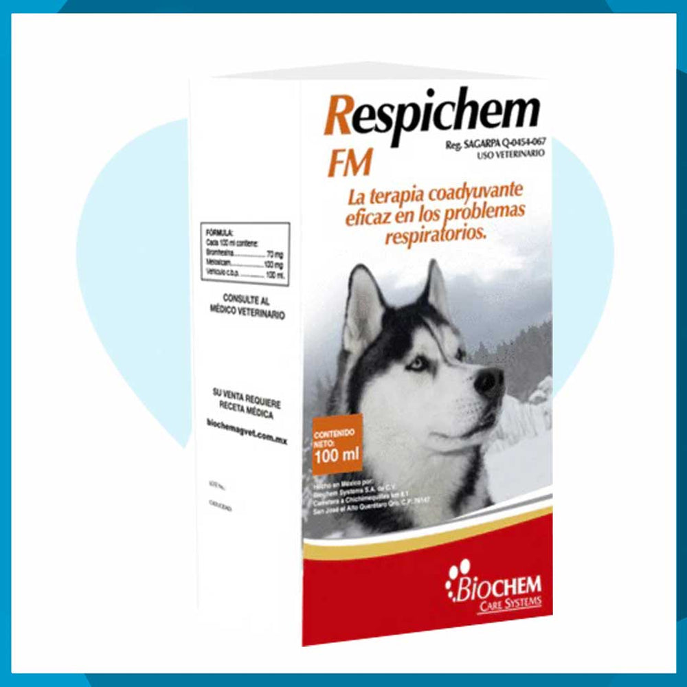 Respichem FM Suspensión Oral 100 ml es un medicamento veterinario diseñado para el tratamiento de afecciones respiratorias en perros y gatos. Su fórmula combina fármacos que reducen la inflamación y mejoran la fluidificación de secreciones, facilitando la respiración. Requiere receta médica veterinaria vigente. Ideal para fases agudas y crónicas de enfermedades respiratorias.