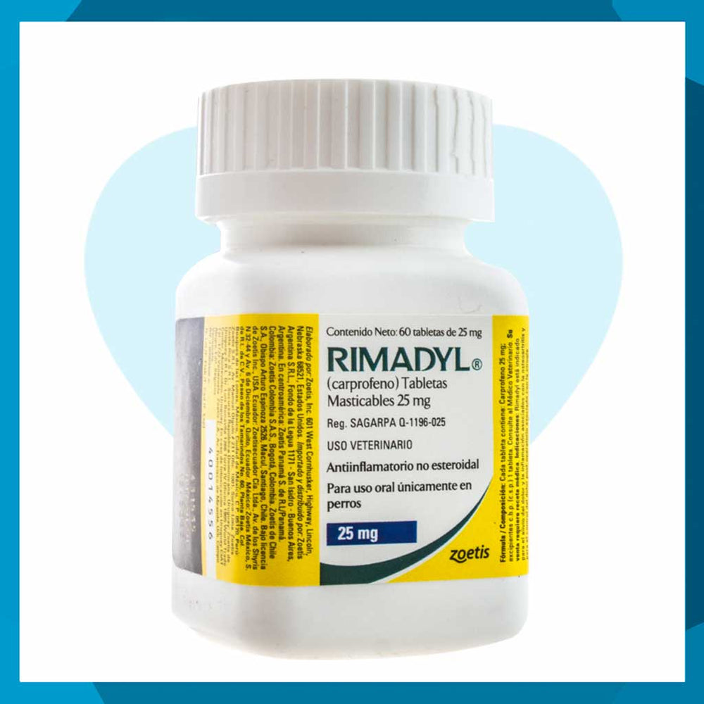 Adquiere Rimadyl 25 mg en Pet Protect con receta médica veterinaria. Ofrecemos envío seguro y seguimiento en tiempo real.