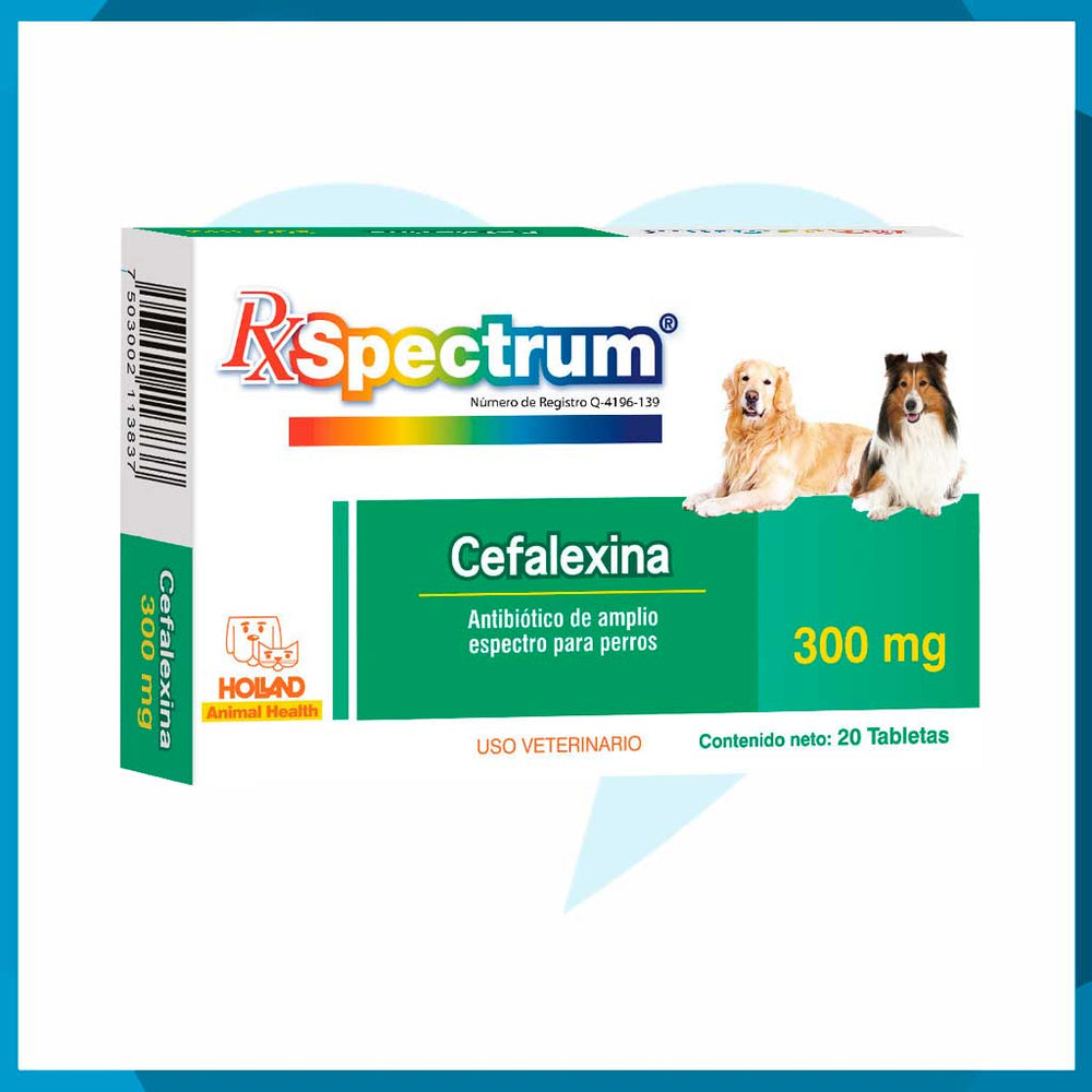 Rx Spectrum Cefalexina 300mg caja 20 tabletas es un antibiótico oral de amplio espectro diseñado para el tratamiento de infecciones bacterianas en mascotas. Su formulación de cefalexina de alta pureza garantiza una absorción rápida y efectiva. Está indicado para perros y gatos que requieran terapia antibacteriana, bajo prescripción veterinaria. Cada tableta contiene 300mg de cefalexina, lo que facilita el ajuste de dosis según el peso del animal. En Pet Protect encuentras este producto con garantía de calidad y envío rápido.